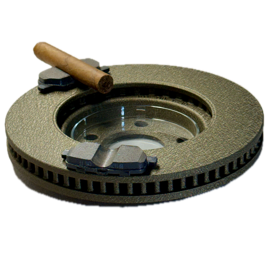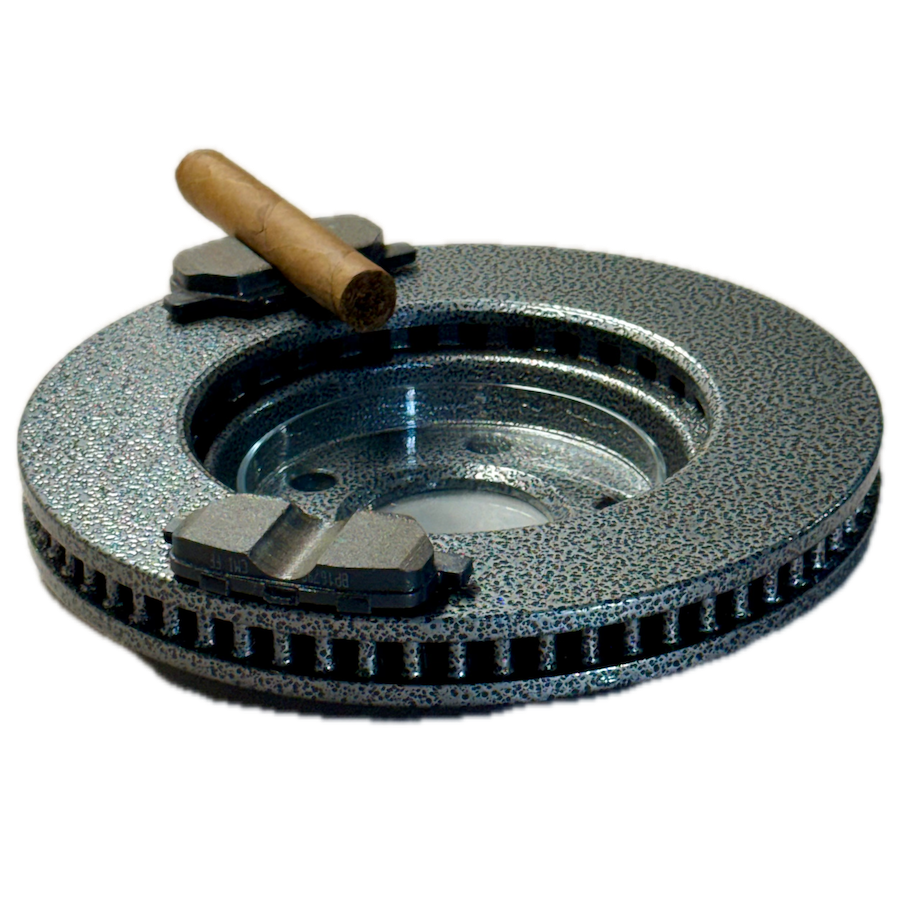 CigarBrake® is a premium cigar ashtray crafted from an authentic automotive brake rotor and brake pads, delivering unmatched weight, stability, and industrial style. Designed for cigar enthusiasts who value form and function, it’s a statement piece built to last.